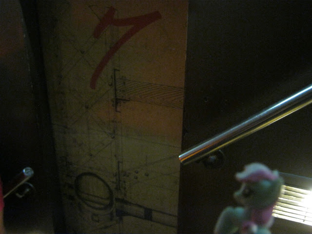 Haha I can get up higher than anypony here by standing near the ceiling. Also, why is there a wooden block up here?