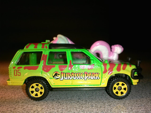 The night we saw the newest Jurassic World movie, we managed to find this Matchbox car and got a cool Minty-eye-in-the-window picture like from the first Jurassic Park movie. Turn the light off!